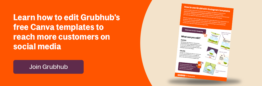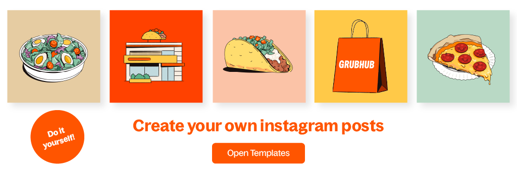 Got someone on your team who can get a little creative? Customize these templates to announce your partnership with Grubhub while staying cohesive with your brand. Pick from one of our five Canva designs and add your own food photography and colors. These templates are easy to update with your own photos and branding so your social feed continues to tell your restaurant’s unique story.