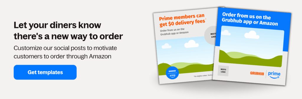 Prime members have saved hundreds of millions of dollars for waived subscription fees and discounts with their Grubhub+ membership. These exclusive deals make activating Grubhub+ memberships more enticing than ever for customers, driving more potential business to your store. Plus, with moments like Prime Day, there are even more opportunities to boost sales. Tap into our Amazon and Grubhub social media templates to let your customers know there’s a new way to order from your business.